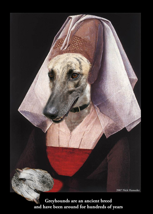 Wouldn't you like to honestly tell your friends that you have royal blood in your family? You can if you adopt a Greyhound. The Greyhound is an ancient as the desert from which it sprung. For thousands of years they were the dog of choice by kings, queens, pharaohs, sheiks, and people of distinction. In early Arabian culture, the birth of a Greyhound was cause of great celebrations and second only in importance to the birth of a son. They were the only dogs permitted to share an Arab's tent or ride atop his camel. They were also the only dog mentioned by name in the King James Version of the Bible (Proverbs 30:29-31).